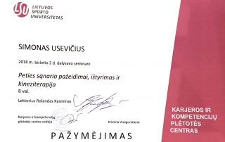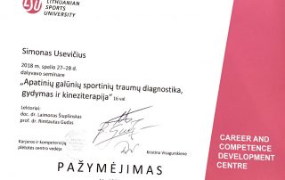 2018 m. – Seminaras „Peties sąnario pažeidimai, ištyrimas ir kineziterapija“ (8 val.), lekt. Rolandas Kesminas