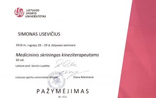 2019 m. – Seminaras “Medicininis skriningas kineziterapeutams” (16 val.), lekt. Prof. PhD Kerstin Lüdtke (Vokietija)