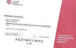 2018 m. – Seminaras „Sportinių traumų rizikos įvertinimas ir prevencija“ (8 val.), lektorius doc. dr. Laimonas Šiupšinskas