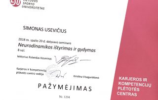 2018 m. – Seminaras „Neurodinamikos ištyrimas ir gydymas“ (8 val.), lektorius Rolandas Kesminas