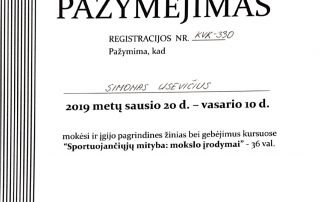 2019 m. – Seminaras „Funkcinio mobilumo treniravimas“ (8 val.), lektorius Tomas Linksmuolis