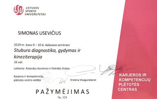 2019 m. – Seminaras „Stuburo diagnostika, gydymas ir kineziterapija“ (16 val.), lektoriai Rolandas Kesminas ir Gyd. Deividas Stukas