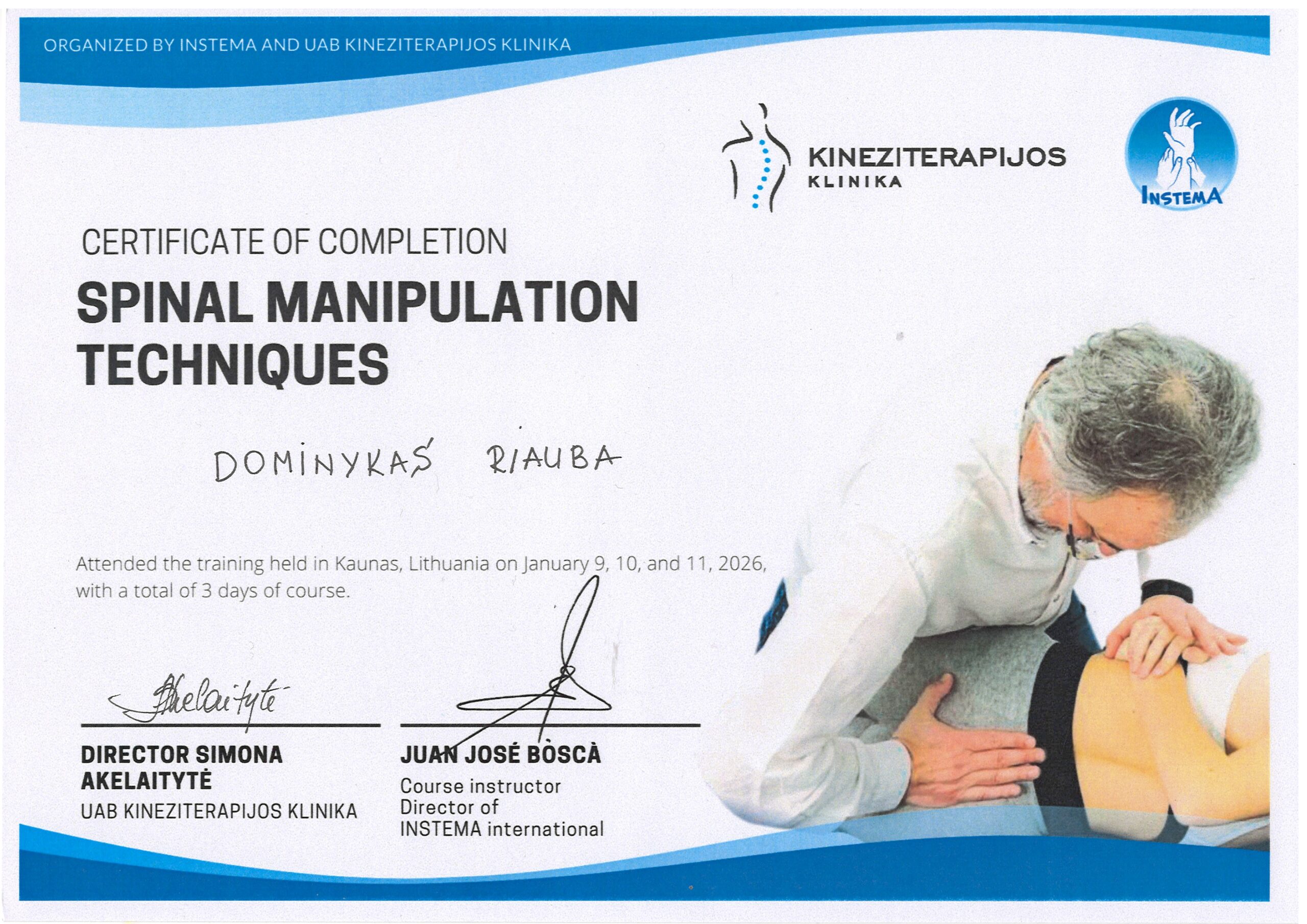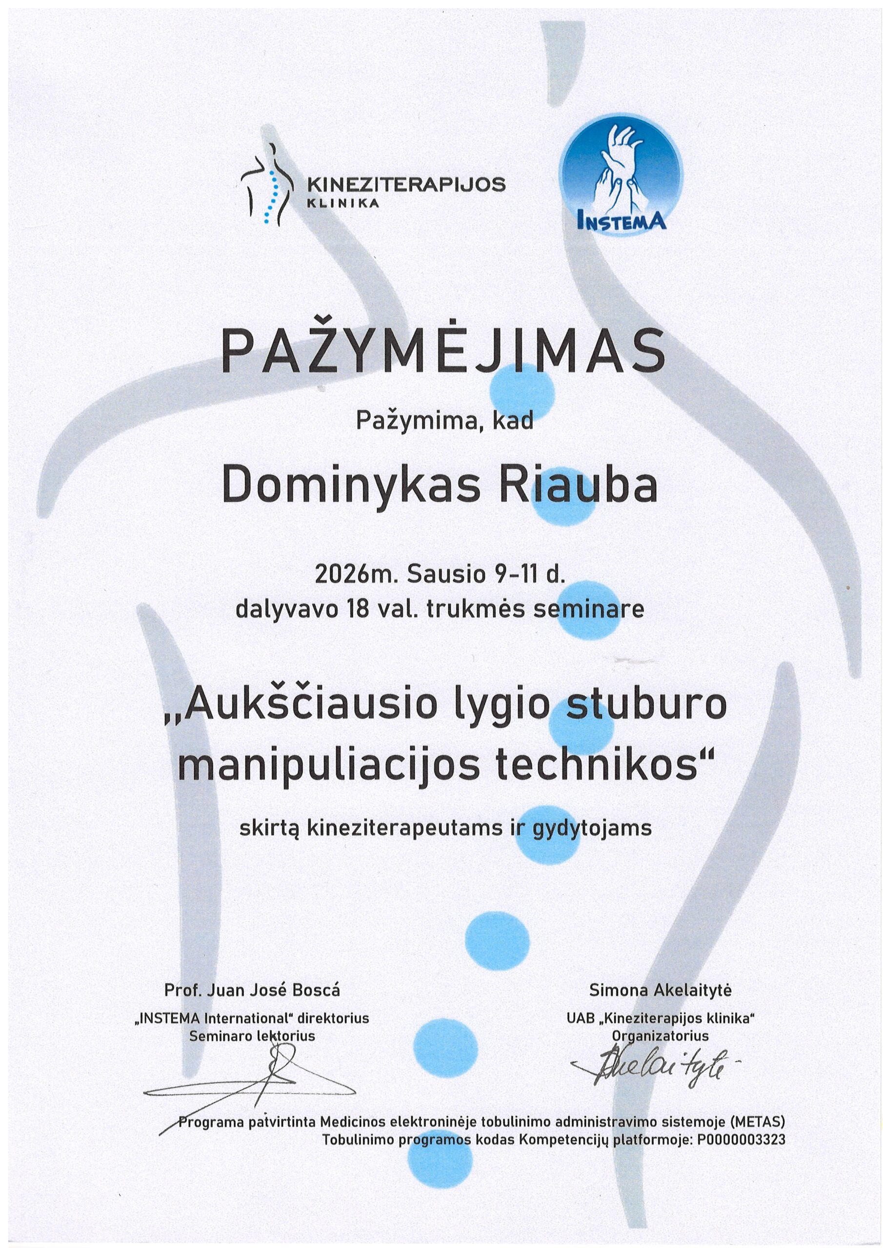 2026 m. Seminaras „Aukščiausio lygio stuburo manipuliacijos technikos“, (18 val.) lekt. Prof. Juan José Boscà (Ispanija)