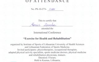 2015 m. – Konferencija “Exercise for health and Rehabilitation”.