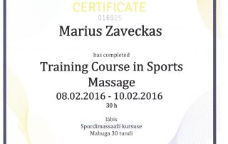 2016 m. – Tarptautiniai praktiniai sportinio masažo kursai