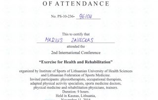 2016 m. – Konferencija “Exercise for health and Rehabilitation”.