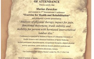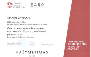 2016 m. – Seminaras „Klubo ir peties sąnarių kineziologija: kineziterapinis ištyrimas, vertinimas ir gydymas“, lekt. prof.dr. Donald A.Neumann (JAV)
