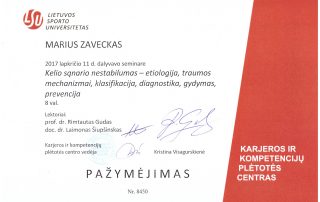 2017 m. – Seminaras „Kelio sąnario nestabilumas – etiologija, traumos mechanizmai, klasifikacija, diagnostika, gydymas, prevencija“