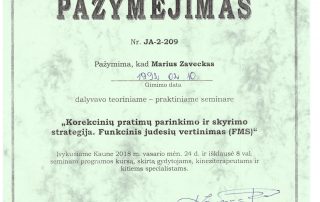2018 m. – Praktinis-teorinis seminaras „Korekcinių pratimų parinkimo ir skyrimo strategija. Funkcinis judesių vertinimas (FMS)“