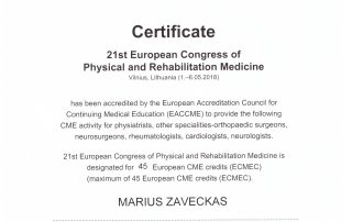 2018 m. – Kongresas „21st European Congress of Physical and Rehabilitation Medicine“.