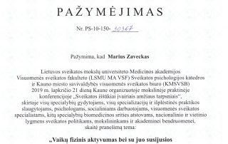 2019 m. – Seminaras “Medicininis skriningas kineziterapeutams” lekt. Prof. PhD. Kerstin Lüdtke (Vokietija)
