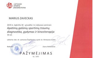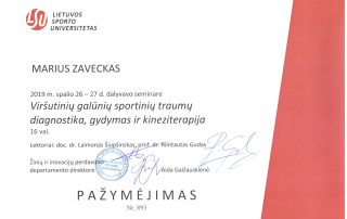 2019 m. – Seminaras „Viršutinių galūnių sportinių traumų diagnostika, gydymas ir kineziterapija“ (16 val.) lektoriai doc. dr. Laimonas Šiupšinskas ir prof. dr. Rimtautas Gudas
