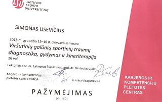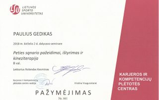 2018 m. – Seminaras „Peties sąnario pažeidimai, ištyrimas ir kineziterapija“ (8 val.), lekt. Rolandas Kesminas