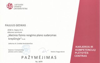 2018 m. – Seminaras „Metinio fizinio rengimo plano sudarymas krepšinyje“ (8 val.), lektorius dr. Evaldas Kandrotavičius
