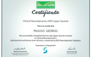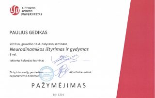 2019 m. – Seminaras „Neurodinamikos ištyrimas ir gydymas“ (8 val.), lektorius Rolandas Kesminas