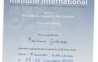 2020 m. – Kursai „McKenzie – Part A: Lumbar spine“ (28 val.), lekt. Sara E. Luetchford (Italija)