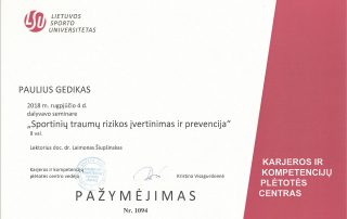 2018 m. – Seminaras „Sportinių traumų rizikos įvertinimas ir prevencija“ (8 val.), lektorius doc. dr. Laimonas Šiupšinskas