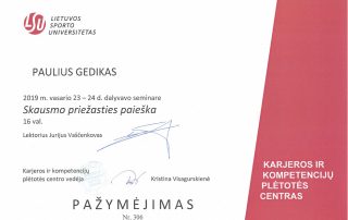 2019 m. – Seminaras „Skausmo priežasties paieška“ (16 val.), lektorius Jurijus Vaščenkovas