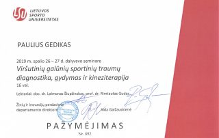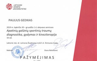 2019 m. – Seminaras „Apatinių galūnių sportinių traumų diagnostika, gydymas ir kineziterapija“ (16 val.), lektoriai doc. dr. Laimonas Šiupšinskas ir prof. dr. Rimtautas Gudas