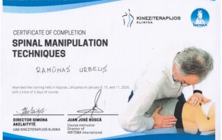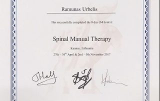 - 2017 m. – Kursai „Manualinė stuburo terapija“ (64 val.), lekt. Vaidas Stalioraitis (Australija)