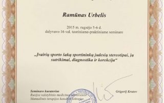 - 2015 m. – Seminaras „Įvairių sporto šakų sportininkų judesių stereotipai, jų sutrikimai, diagnostika ir korekcija“ (16 val.), lekt. Grirorij Krutov (Rusija)