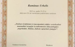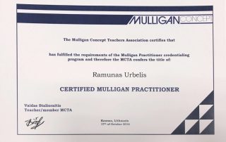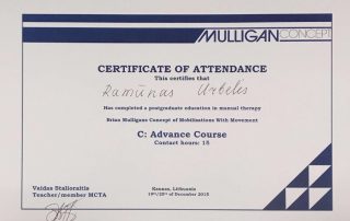- 2015 m. – Kursai „Mulligan manualinė terapija Pažengusiųjų kursas“ (15 val.), lekt. Vaidas Stalioraitis (Australija)