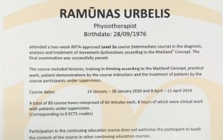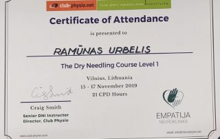 - 2019 m. – Kursai „The Dry Needling Course Level 1“ (21 val.), lekt. Craig Smith (PAR, Didžioji Britanija)